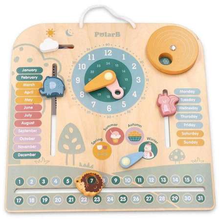 Jucarie Educativa pentru Copii Viga Calendar si Ceas din Lemn 30x30cm