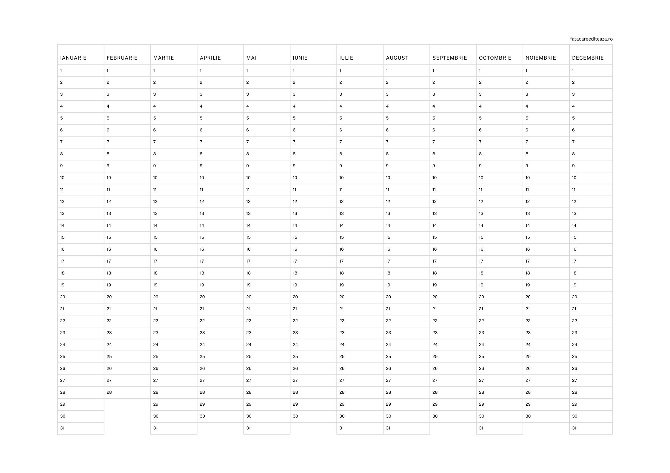 All year calendar – calendar anual PDF/ JPG imprimabil – blank și 2026